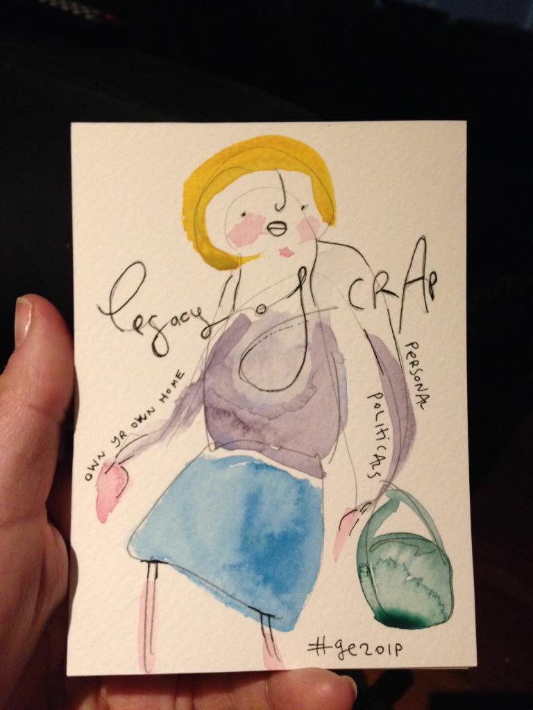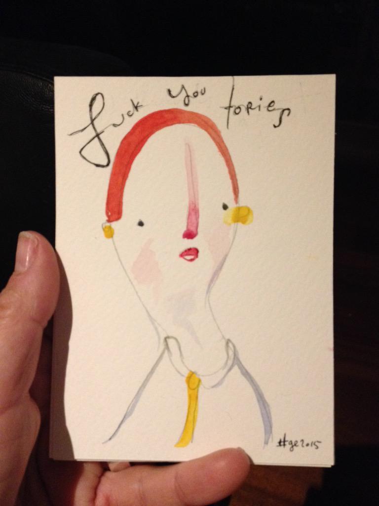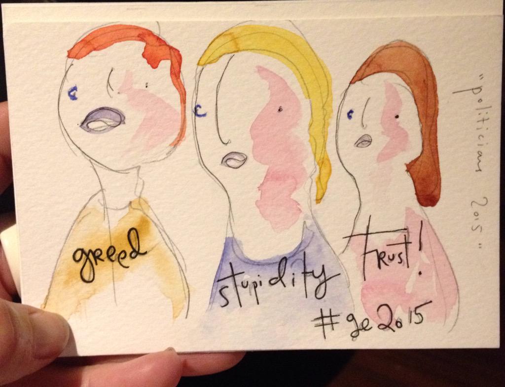 And tonight it's the #livedraw General Election special. By way of explanation – and I say with no little irony – this works in a similar way to the Raw Art Eurovision #livedraw. I get some wine/gin/anything – watch the telly and paint the election.